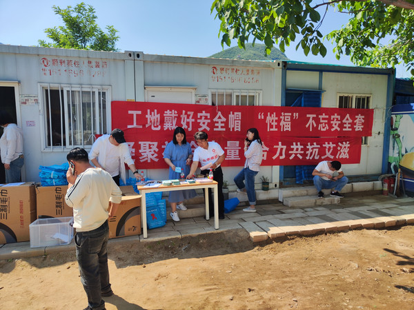 为了做好第五轮艾滋病综合防治示范区建设工作,了解不同人群艾滋病防治知识宣传干预效果,2024年5月27日,门头沟区疾控中心联合门头沟区住建委在中航天建设工程集团有限公司潭柘寺项目工地开展建筑工人艾滋病防治知识知晓率调查。