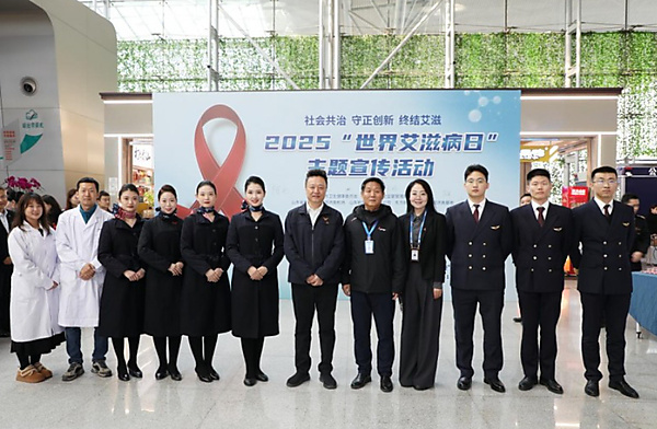 12月1日,在第38个“世界艾滋病日”到来之际,东航山东分公司联合济南机场各驻场单位开展“世界艾滋病日”主题宣传活动,积极响应“社会共治 守正创新 终结艾滋”的主题号召。