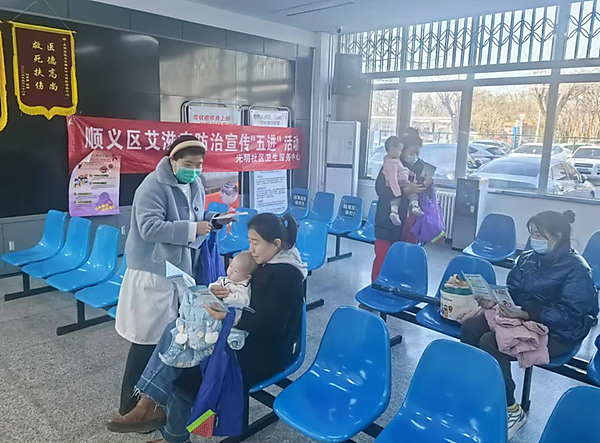 顺义区光明社区卫生服务中心利用门诊接种日进行宣传艾滋防治活动