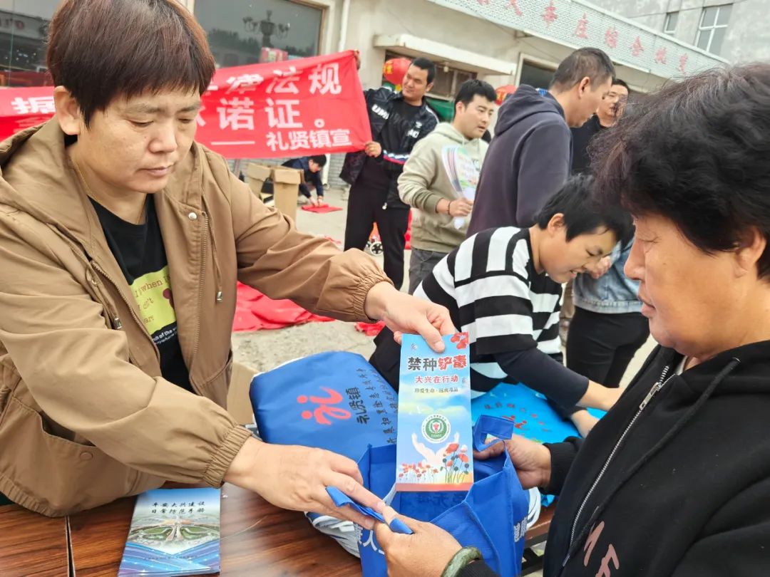 为进一步增强全民识毒、防毒、拒毒能力,提高广大群众自觉抵御毒品的意识,10月17日,大兴区礼贤镇禁毒办联合相关职能科室,走进辖区中心村开展禁毒宣传活动。