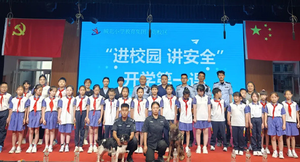 9月2日14时30分,北京市公安局公交总队朱辛庄站派出所民警前往昌平区城北三街小学为小学生们开讲安全第一课,此次活动会同城北街道、警犬大队及地铁客运四分公司等四家单位共同开展。