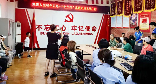 为进一步提高辖区青少年对毒品危害的认识与自我保护意识,近日,通州区永顺镇平安办联合团委、妇联、天堂河女子强制隔离戒毒所“七色花”宣讲团,走进北马庄村开展禁毒宣传活动。