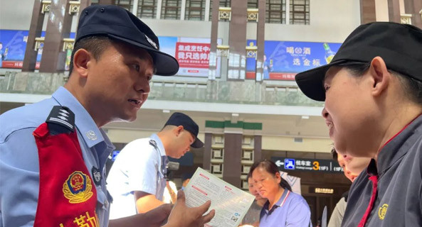 6月26日,北京铁路公安处携手北京铁路运输检察院、北京丰台站地区管理办公室、北京站、北京丰台站、北京客运段等单位,分别在北京站、北京丰台站和G93次列车上开展了以“防范青少年药物滥用”为主题的国际禁毒日宣传活动