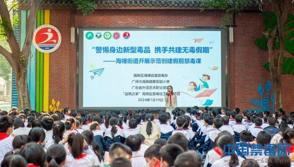 1月19日,在广州市海珠区禁毒办的指导下,海幢街道禁毒办联合海幢派出所、广东省外语艺术职业学院马克思主义学院禁毒普法宣讲团、广州市心明爱社会工作服务中心“启帆之家”海珠区禁毒社工服务项目,在广州市海珠镇泰实验小学开展主题为“警惕身边…