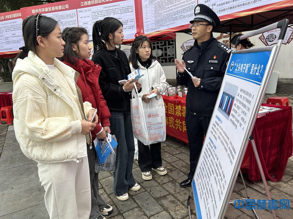 中国禁毒网讯 为进一步加大禁毒宣传力度,扩大禁毒宣传覆盖面。近日,江西省赣州市赣县区禁毒办以2023“暖冬行动”暨“稀金工”专场招聘会为契机,在客家文化城开展禁毒宣传活动,向参加招聘会的企业工作人员及群众普及禁毒知识。