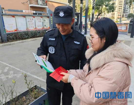 活动中,网格员为物业员工、来往居民发放装有“禁毒口诀”的特制红包,并主动向其讲解毒品对个人、家庭、社会造成的危害,着重科普了什么是“依托咪酯”及含有“依托咪酯”成分的电子烟,呼吁大家警惕新型毒品的滥用危害,培养积极向上的良好生活方式。同时,提醒广大居民保持对毒品的警惕性,自觉抵御诱惑,不吸毒、不贩毒、不制毒、不参与任何与毒品有关的违法犯罪活动,并鼓励广大居民群众举报各类涉毒违法犯罪行为或提供线索。