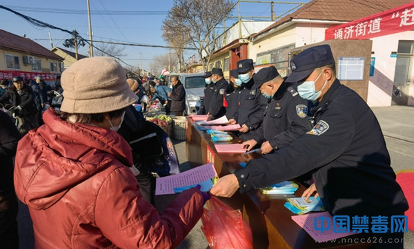 活动中,禁毒志愿者和民辅警前往即墨区杨家村大集,通过摆放禁毒宣传展板等方式,结合真实案例,让群众了解到毒品给个人、家庭、社会带来的危害。同时,民警向赶集群众发放禁毒宣传资料,现场接受群众咨询,面对面向群众普及禁毒知识。