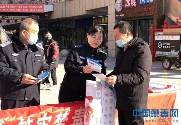 中国禁毒网讯 为进一步扩大禁毒宣传覆盖面,提高广大群众对禁毒工作的知晓率,确保辖区居民群众过一个安定祥和的新春佳节活动中,1月17日,山东省德州市武城禁毒民警联合新城派出所组织开展禁毒宣传活动。