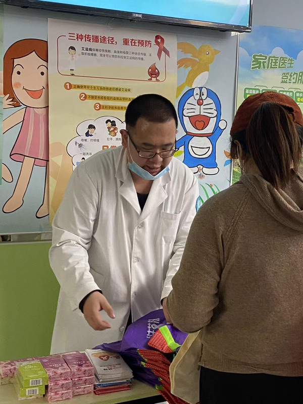 医务人员与参与的居民进行了积极的互动,并对居民提出的性传播疾病的一些问题进行了耐心的解答,期间共发放宣传折页、艾滋病宣传标语布包等宣传品200余份