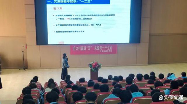 武汉成丰职业技工学校是蔡甸区2024年新开设的中专类院校,学生群体主要为14-18岁青少年,也是艾滋病防控的重点人群,本次活动得到了学校的大力支持,现场座无虚席,共有400余名师生参加。