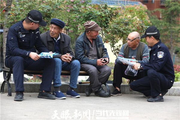 民警在社区为老人开展反诈宣传。(万再祥 摄)
