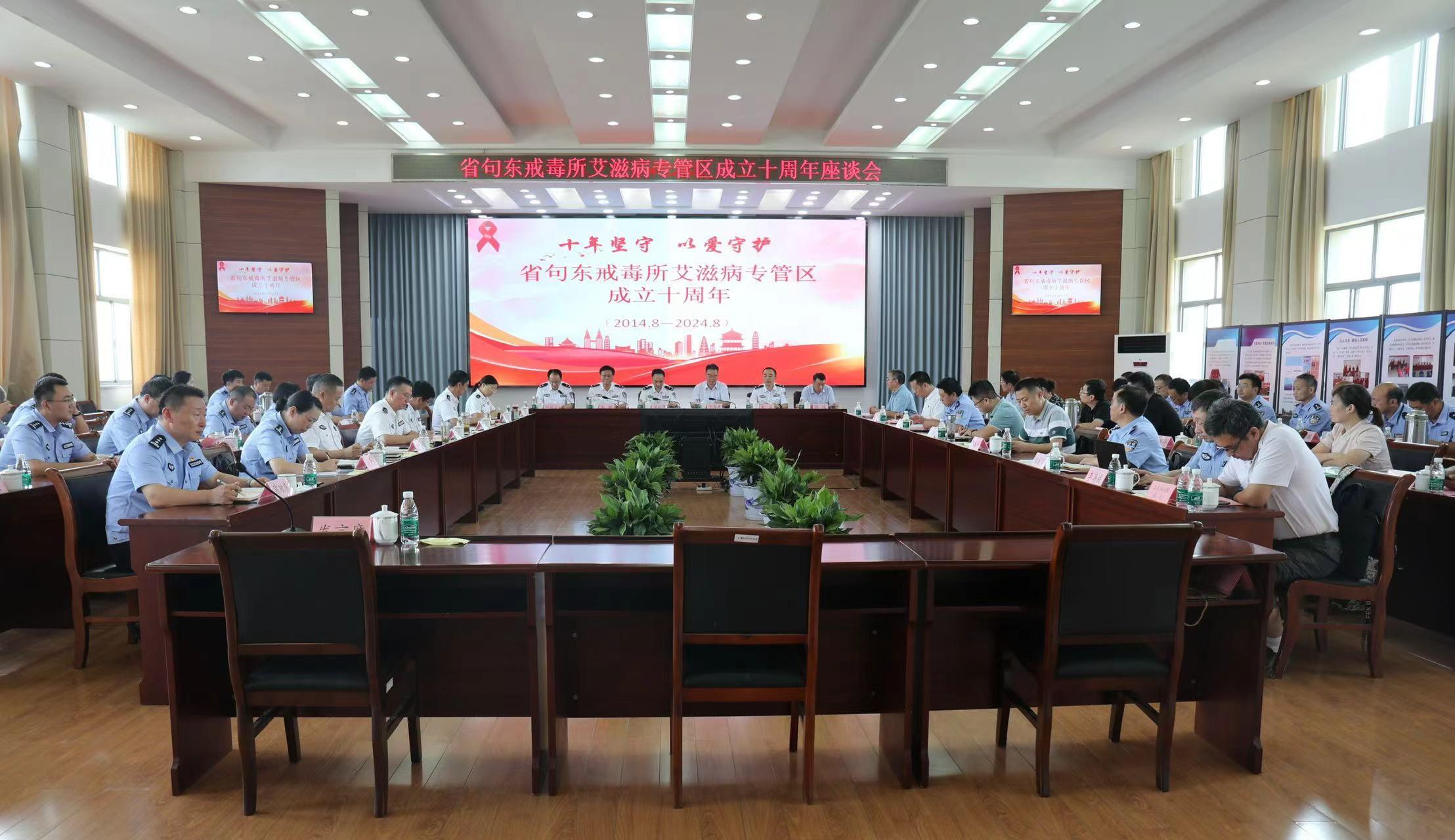 近日,江苏省戒毒管理局联合省疾控中心在省句东强制隔离戒毒所举办“十年坚守 以爱守护”艾滋病专管区成立十周年活动。省戒毒局党委委员、副局长洪从清,省疾控中心主任羊海涛出席活动并讲话,省疾控中、镇江市疾控中心、句容市疾控中心,江苏省人民医院句容分院、常州春风艾滋病服务社,以及省戒毒管理局、句东戒毒所、女子戒毒所等相关单位领导和部门同志共60人参加活动。