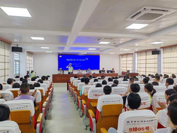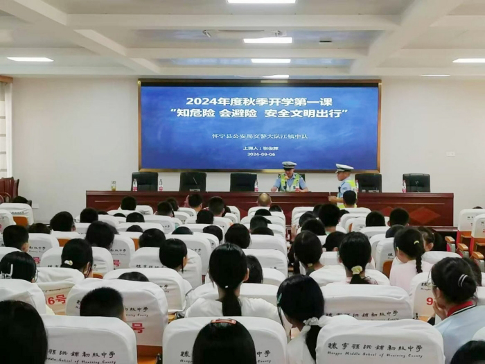 9月6日上午,怀宁县洪铺初中邀请洪铺镇派出所、县交警大队江镇中队和洪铺镇卫生院到校开展开学安全第一课活动,普及安全教育知识,助力学生健康成长。
