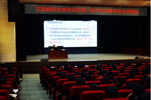 活动中,彭宇支队长从艾滋病的致病原理、传播途径、防治措施、检测治疗等方面进行了详细讲解,通过一组组惊人数据、一个个真实案例,让同学们深刻地了解艾滋病的危害,把防艾知识渗透到每个学生的心里,让学生不仅了解防艾知识,还懂得在以后的人生中如何保护自己。