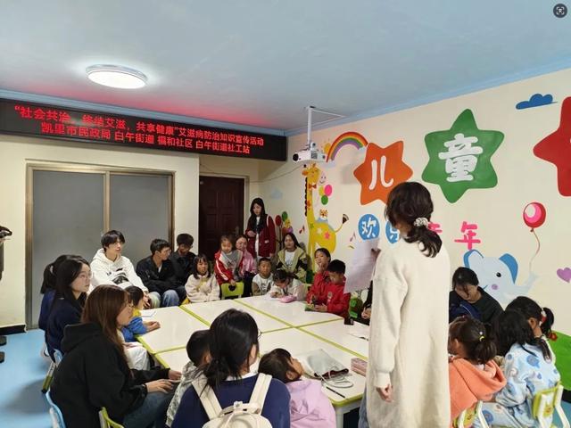 11月17日,白午街道社工站联合凯里学院支教团共同举办以“社会共治,终结艾滋,共享健康”为主题的艾滋病防治知识宣传教育活动,为艾滋病防治工作注入了新的活力。