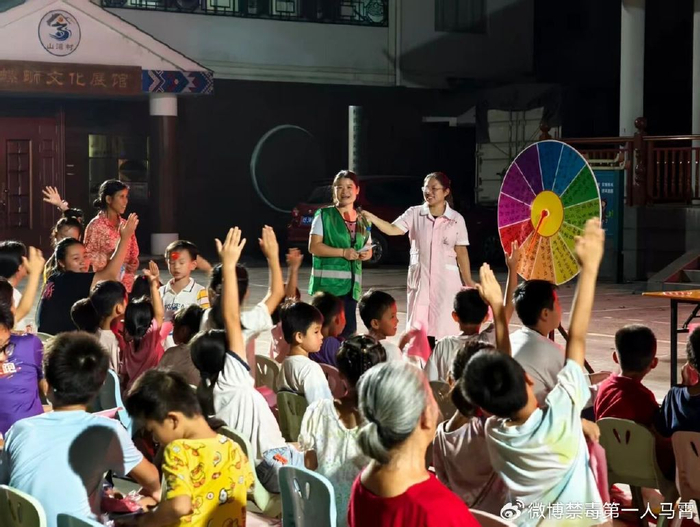 近日,太阳村镇山湾村利用傍晚休闲时间在村内广场举办了一场禁毒防艾宣传活动,将专业科普与趣味互动深度融合,织密了乡村安全的防护网。