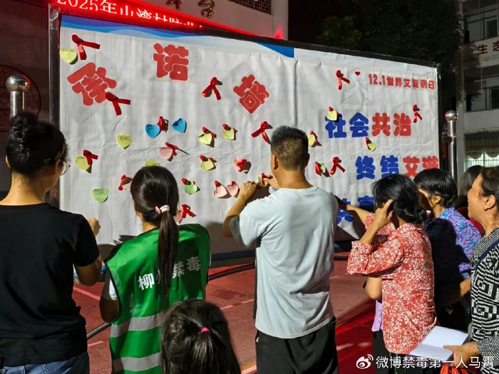 活动尾声,村民们在“承诺墙”郑重写下自己的禁毒防艾誓言。“同心禁毒,守护家园”“携手防艾,共享健康”……一句句质朴而坚定的誓言被贴在墙上,与红色丝带交相辉映,成为山湾村最温暖的健康约定。
