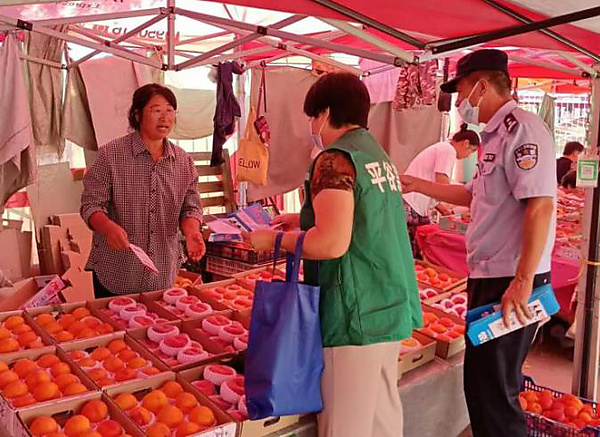 为进一步扩大禁毒宣传影响面,近日,平谷区大华山镇平安办、派出所、社戒社康工作站联合在大桃市场开展禁毒宣传活动。