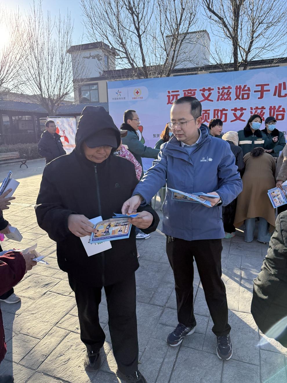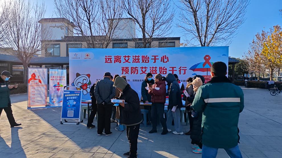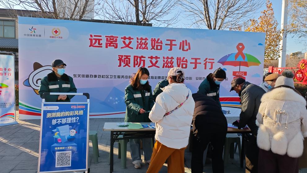 冬日暖阳下,安阳市平原路聂村广场上一片热闹景象。河南体彩安阳分中心联合国家级体彩公益金使用单位安阳市文峰区红十字会、东关街道办事处社区卫生服务中心等多部门,在这里举办主题为“远离艾滋始于心 预防艾滋始于行”的公益宣传活动。活动现场,体彩公益金支持的这一暖心举措,让防艾知识如春风化雨般深入社区居民心中。