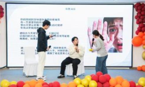 ▲学生上台进行校园防艾情景模拟演练。(区卫健局供图)