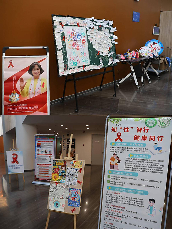 活动伊始,观众们走进“红丝带艺术长廊”参观防艾主题作品展,涵盖漫画、手绘海报、防艾油纸伞、瓷娃娃等多种原创作品,成为直观生动的“防艾教科书”。防艾志愿者现场发放防艾宣传单页、红丝带胸针,鼓励学生在便利贴上留下温暖话语,在防艾展板上许下美好祝福,让防艾宣传从“单向传递”升级为“情感共鸣”。