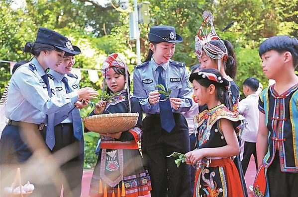 近日,福安市公安局坂中派出所、禁毒大队、情报指挥中心联合福安市坂中中心小学,组成宣传小队,将防溺水、防诈骗、禁毒等知识融入秋游旅程,让畲乡娃在沉浸式体验中收获满满安全技能。警服蓝与畲族服饰的鲜亮碰撞,勾勒出民族团结的暖心画面。