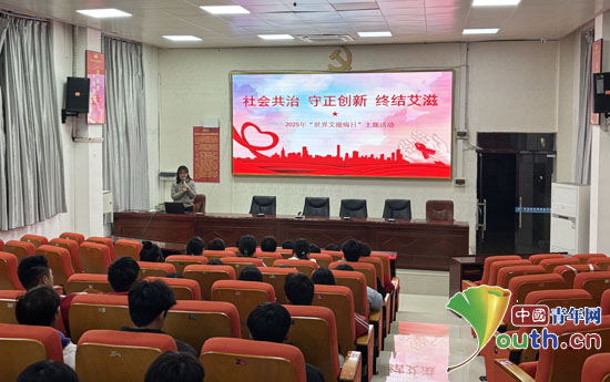 在罗甸县中等职业学校,研支团成员围绕艾滋病的传播途径、科学预防方法、高危场景应急处置等内容展开系统讲解。活动现场,研支团成员重点讲解了“日常接触是否传染”“如何规避潜在风险”等学生关切问题,用通俗案例破除认知误区,通过详实的医学知识与实用的防护技巧,让学生对艾滋病防治有了更全面的认知。