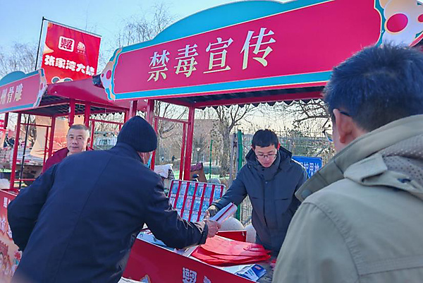 2026年元旦佳节,张湾大集人头攒动、热闹非凡。包括有文艺演出、非遗民俗、特色商贸、文创市集等多重元素。平安建设办公室(综治)抢抓节日群众集中契机,联合综合办公室(办)、党群工作办公室(宣传)、团委、平安建设办公室(安全)、经济发展办公室(经发)、农业综合服务中心(农业服务)、市民活动中心、张家湾派出所、禁毒社工及志愿者队伍,在集市开展“骏马潮前 运河大街”禁毒主题宣传活动。镇党委书记、副镇长亲临现场,与群众面对面交流。
