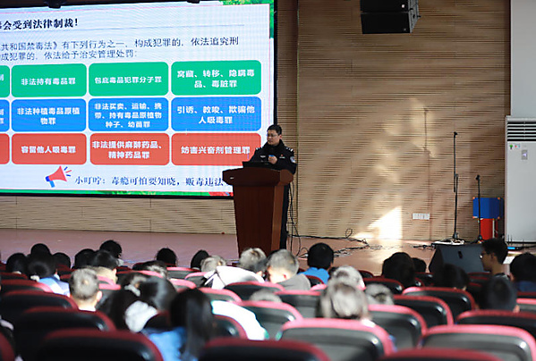 中国禁毒网讯 2026年1月22日,安徽省芜湖市公安局鸠江分局禁毒民警走进芜湖翰文学校,开展“珍爱生命,远离毒品”主题宣传活动。通过宣讲、散发宣传资料、展示毒品模型等多种形式为广大小学生上了一堂生动的禁毒教育课。(摄影:安徽省芜湖市公安局交管支队 陈效宝)