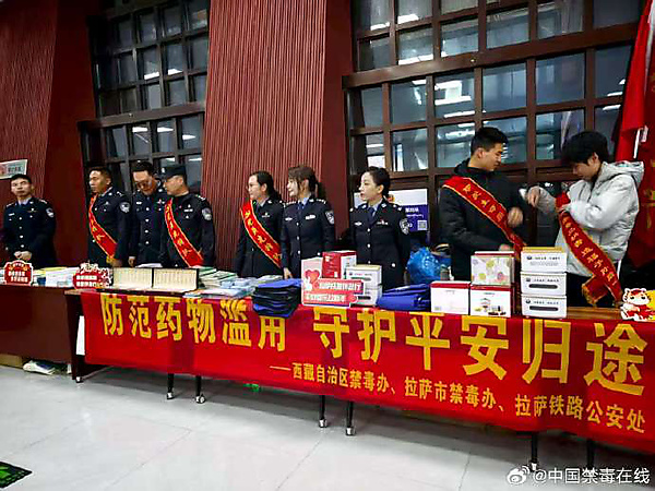 为筑牢春运期间的禁毒防线,提高广大旅客及市民的识毒、防毒、拒毒意识,西藏自治区禁毒办在春运返程高峰期和藏历新年来临之际,联合拉萨市禁毒办、铁路公安处、民航西藏区局公安局分别在拉萨火车站、拉萨贡嘎国际机场集中开展了以“防范药物滥用 守护平安归途”为主题的春运禁毒宣传活动,当天往返旅客近1000余人接受禁毒教育。