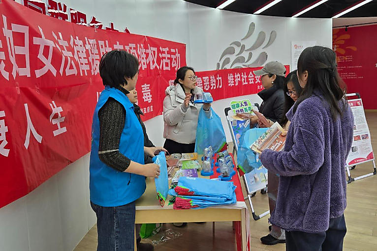 在“三八”国际妇女节来临之际,为切实增强辖区妇女群众的法治观念和禁毒意识,营造健康、和谐、温馨的节日氛围,3月5日下午,平安办联合地区总工会、司法所等多部门,在党群活动中心一层会议室开展以“禁毒普法+手工制作”为主题的特色宣传活动。
